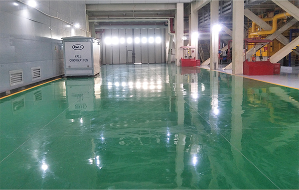 Topcoat application: Roll in epoxy resin anti-static topcoat.